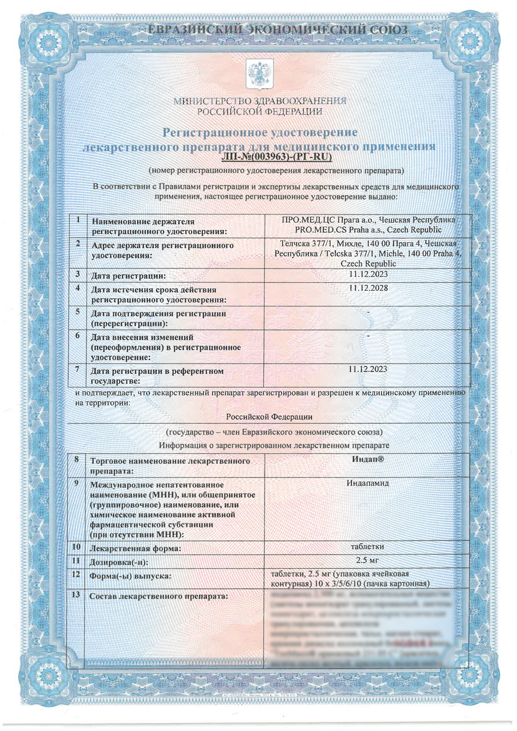 Общая характеристика лекарственного препарата Индап доступна на информационном портале Евразийского экономического союза в информационно-коммуникационной сети «Интернет» http://eec.eaeunion.org/